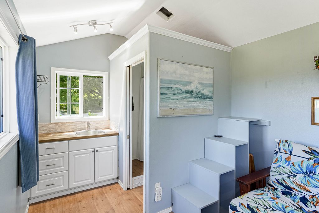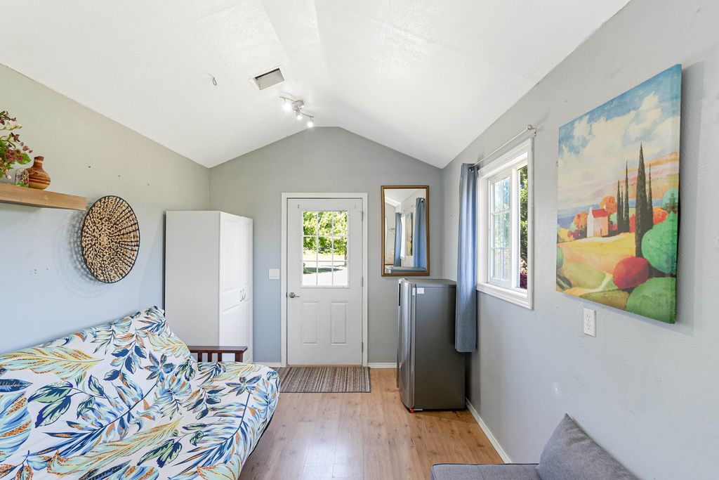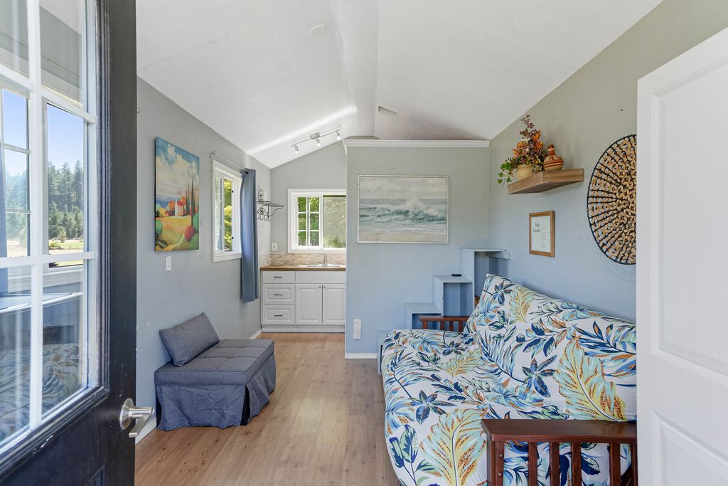 Outdoors, the level, usable acreage invites sustainable living with open areas ready for extensive gardening, solar panels already in place, and a barn/shop with power and concrete floors for hobbies, storage, or animals. A charming 200 sq. ft. tiny home offers additional flexibility as a detached office or guest space.